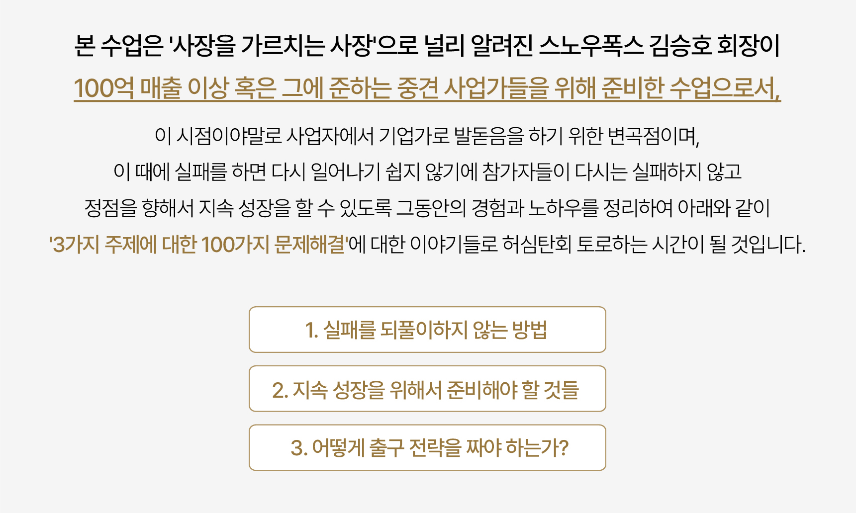 · 수 업 : 김승호의 '백만장자 사장학개론 16'